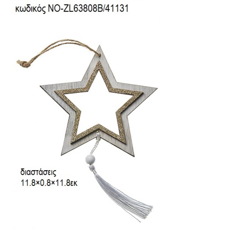 ΑΣΤΕΡΙ ΛΕΥΚΟ ΞΥΛΙΝΟ ΚΡΕΜΑΣΤΟ ΜΕ ΦΟΥΝΤΑ ΝΟ-ZL63808Β/41131